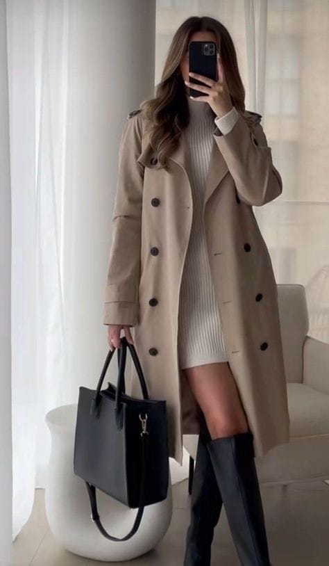 Pair with: A belted coat, hair tied back, pearl studs.
